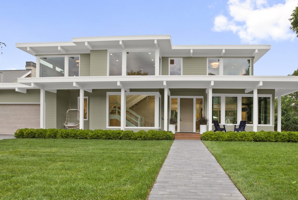 The light gray-green color offers reflective properties, making a home appear brighter and more spacious–especially beneficial for smaller homes. Painting the windows and doors using a darker shade from the same color family can create a dynamic visual effect, enhancing the architectural features.