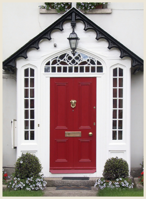 What color red is the door in this picture? I do not see it listed anywhere on this page.