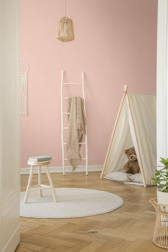 In a kid’s room it lends a subtle, barely-there pink touch—both modern and chic.