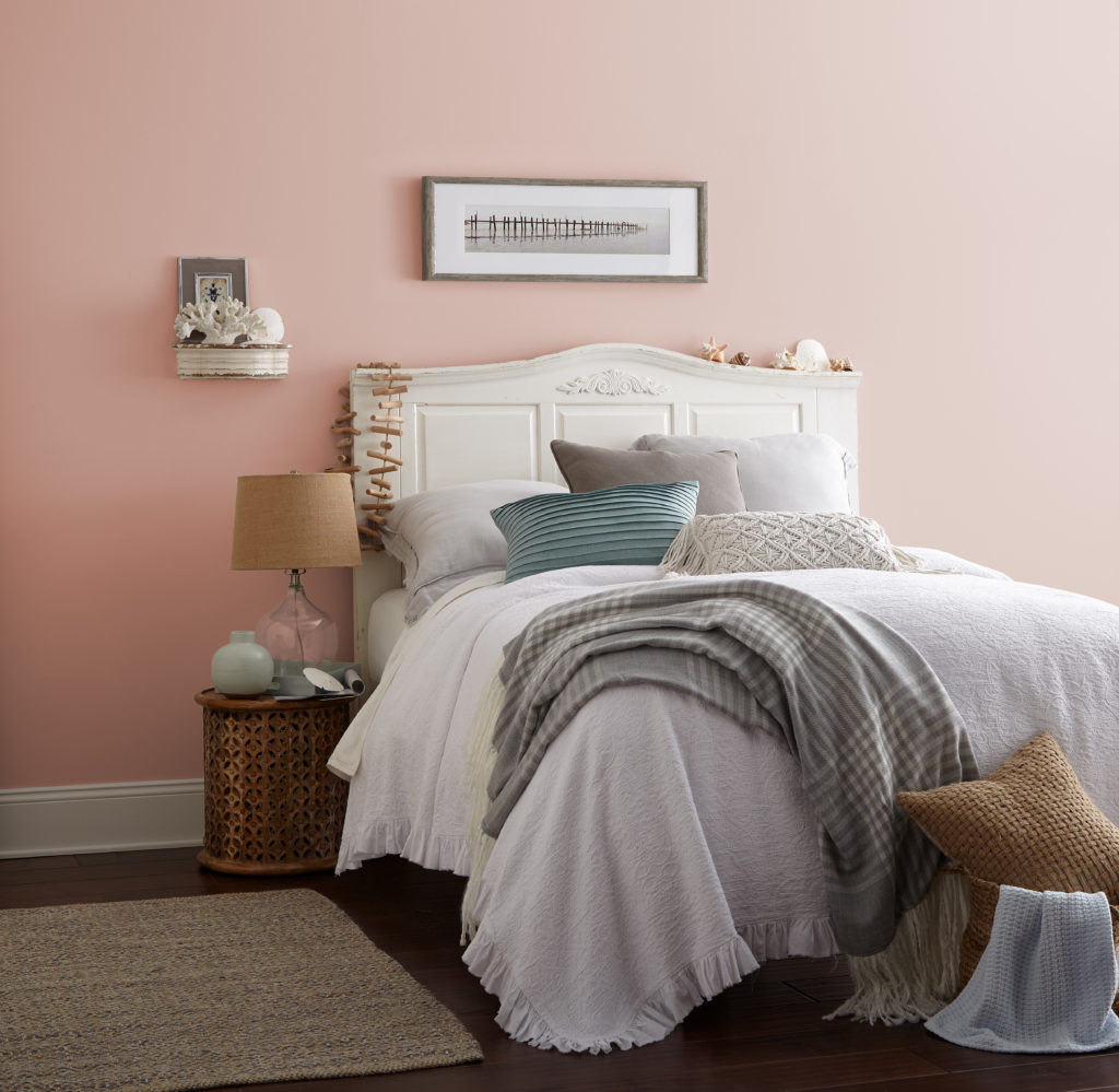 This warm light pink brightens up a bedroom and makes it more inviting.