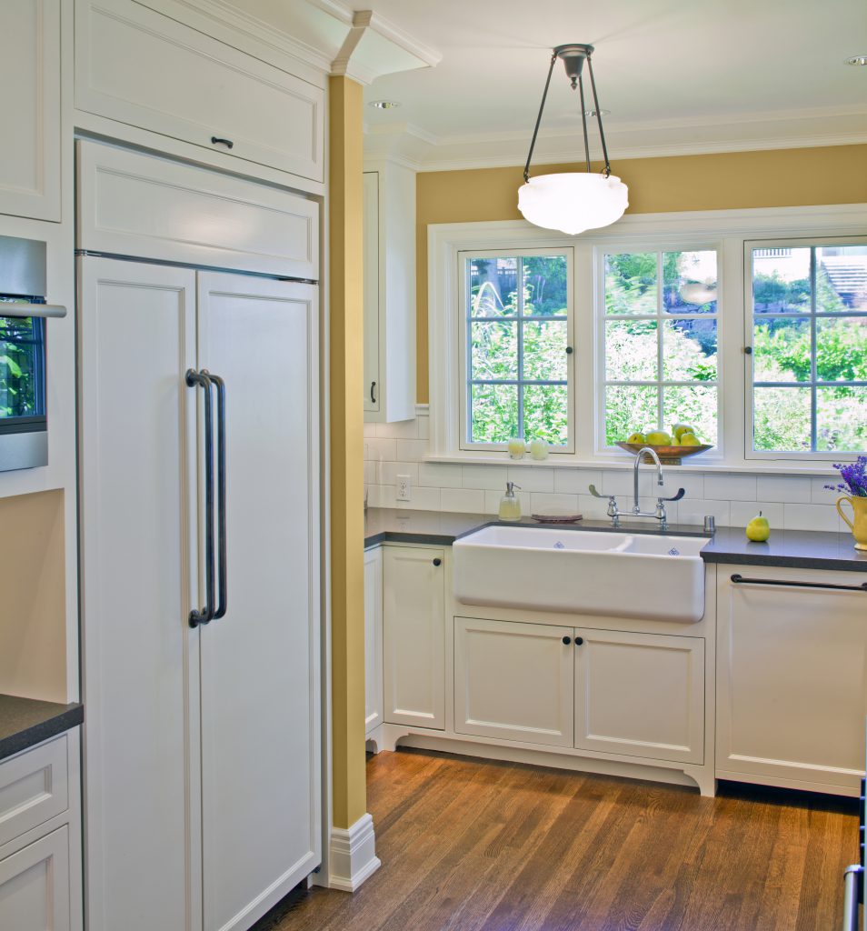 This same tactic works well in a kitchen with abundant natural light, add plenty of white, black and pops of greenery. Add a few other yellow accents, such as artwork or flower arrangements, to add even more cheer to the space.