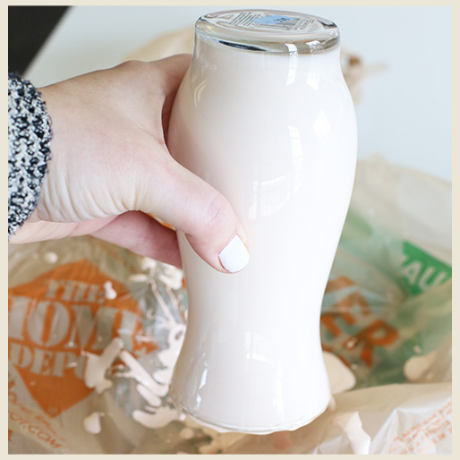 2 Pour paint in glass vases, using funnel if needed. Spin vases slowly to allow paint to fully coat interiors.