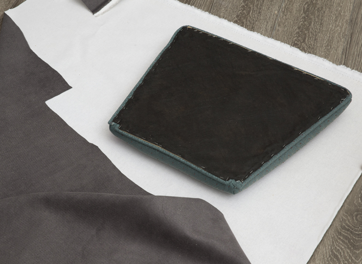 With your hot glue, glue along the edges of the cushion and fold the fabric over the glue. Repeat this process for all four sides to cover the cushion.