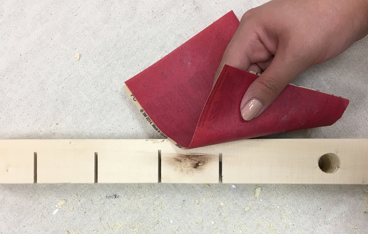 Use a ruler and mark equal distances on the wood board for the hanging slots.
