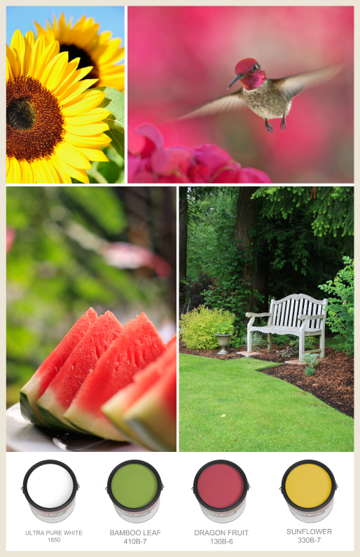 Summerlike colours are found in nature and bloom during the season. Fresh flowers, ripe fruit and diminutive birds ignite our senses, especially after we have endured the long winter stretch. Take pleasure in finding a bench nestled in a park or your own backyard and drink in the colours.