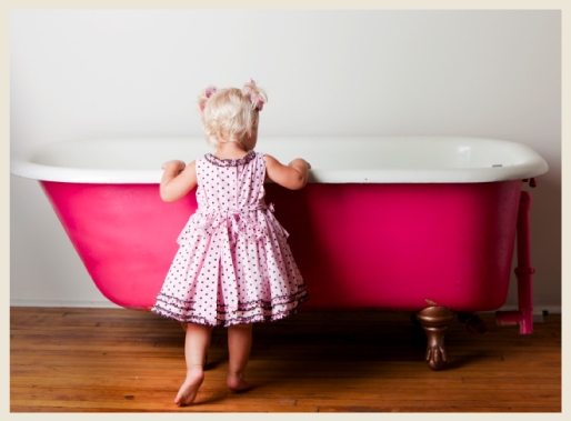 Tub: Watermelon Pink 120B-6. Walls: Light Chiffon 120A-1