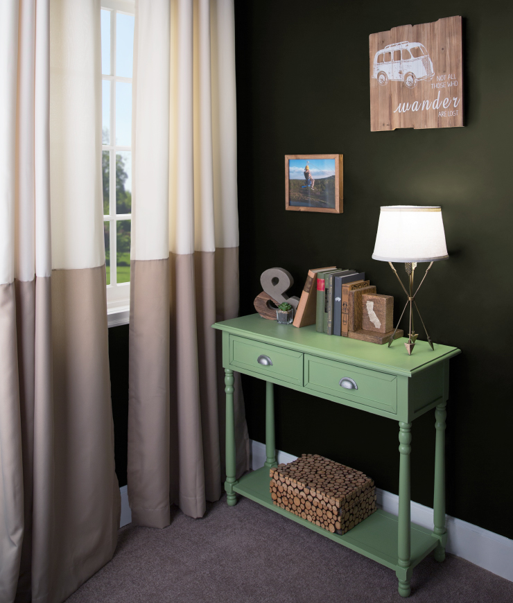These three highway hues work seamlessly together in a dining space. Use Old Map N230-2 on the walls with Asphalt Gray N520-6 and Clear Vista PPU13-11 to accent.