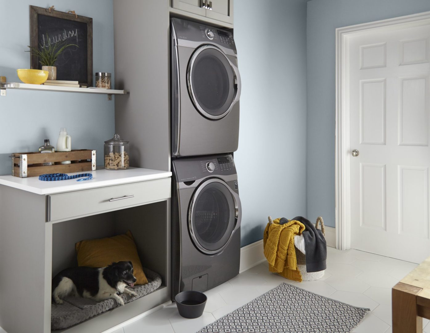 Walls: Light Drizzle N480-1 Cabinets: Battleship Gray N360-4 Trim: Ultra Pure White UL260-14 Door: Ultra Pure White UL260-14 Laundry / Mudroom