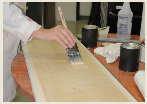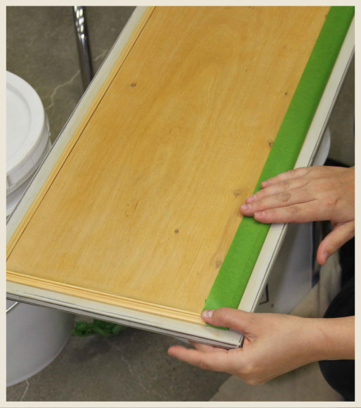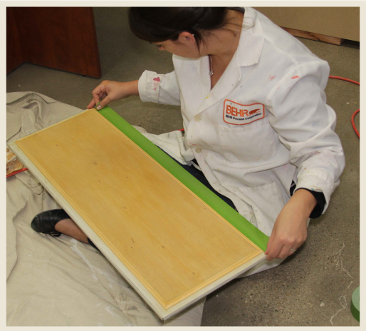 Apply tape to protect the freshly stained and shellac-ed surface from the primer and paint application.