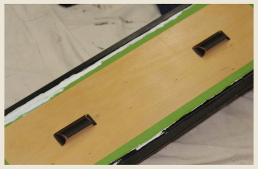 Once your holes are in place you can attach your handles. We selected Liberty Hardware, 3″ Rectangular Bin Pulls in copper. If the screws that come with the drawer pulls are too long, you may have to purchase shorter ones.