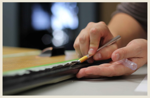 When your pieces create a tight border you can begin gluing them down. Use clamps to hold them in place while the glue dries.