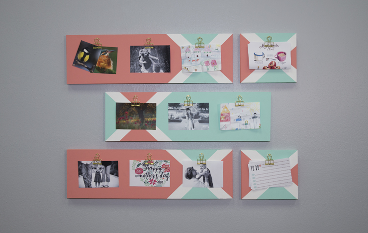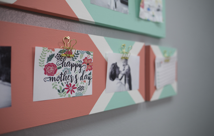 Mount your boards on the wall and hang items your mom might like such as photos, drawings, or a Mother’s Day card.