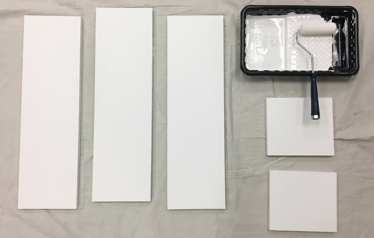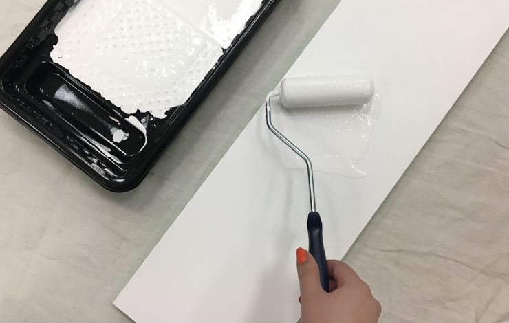 Use a small paint roller. or brush, to paint the base color of your boards. Allow to dry and apply a second coat if desired.