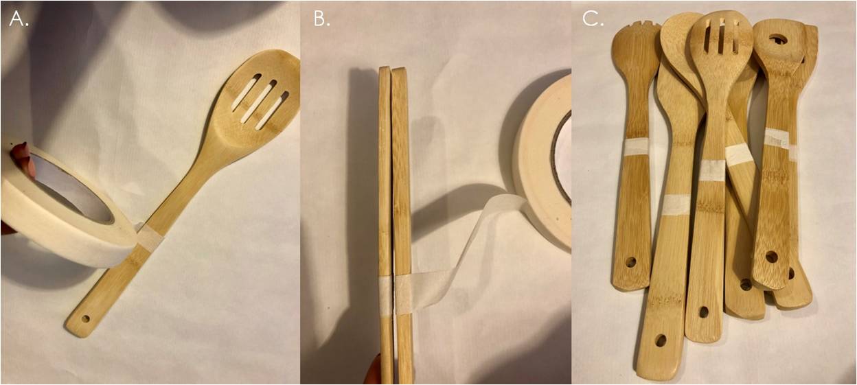 Apply painters tape firmly around the bamboo utensils to prevent any paint from leaking under the tape.