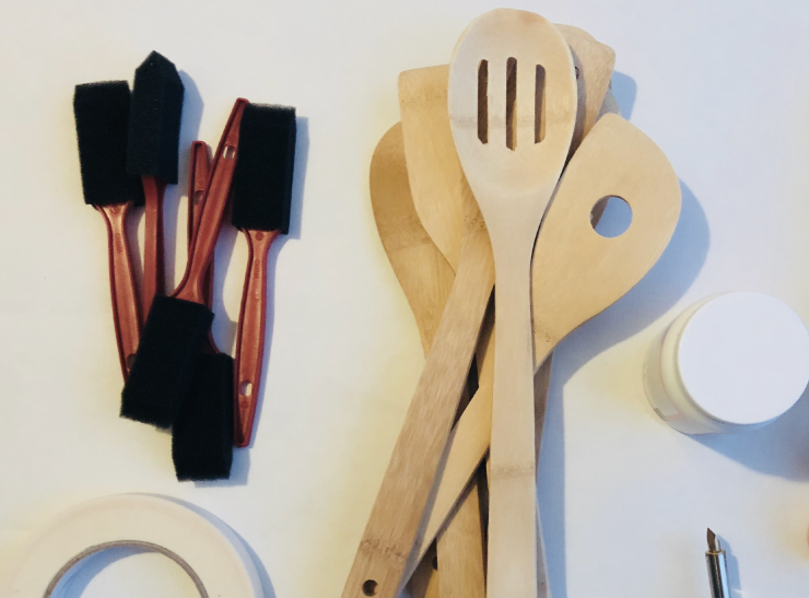 Using desired paint colors and foam brush applicator; evenly paint the handles making sure not to over saturate the utensil.