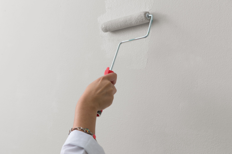Clean the wall of dirt and oil with soap and water. Allow to dry completely before painting. If your wall is a dark color, and you are painting a lighter color, consider first painting a primer coat. Primers can save you in both time and budget.