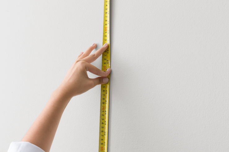 Once your wall is dry, proceed to measure both the width and height in which you would like your stripes to be. Mark guidelines with a pencil.