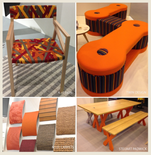 Pumpkin orange was seen in carpet, fabric and painted furniture.