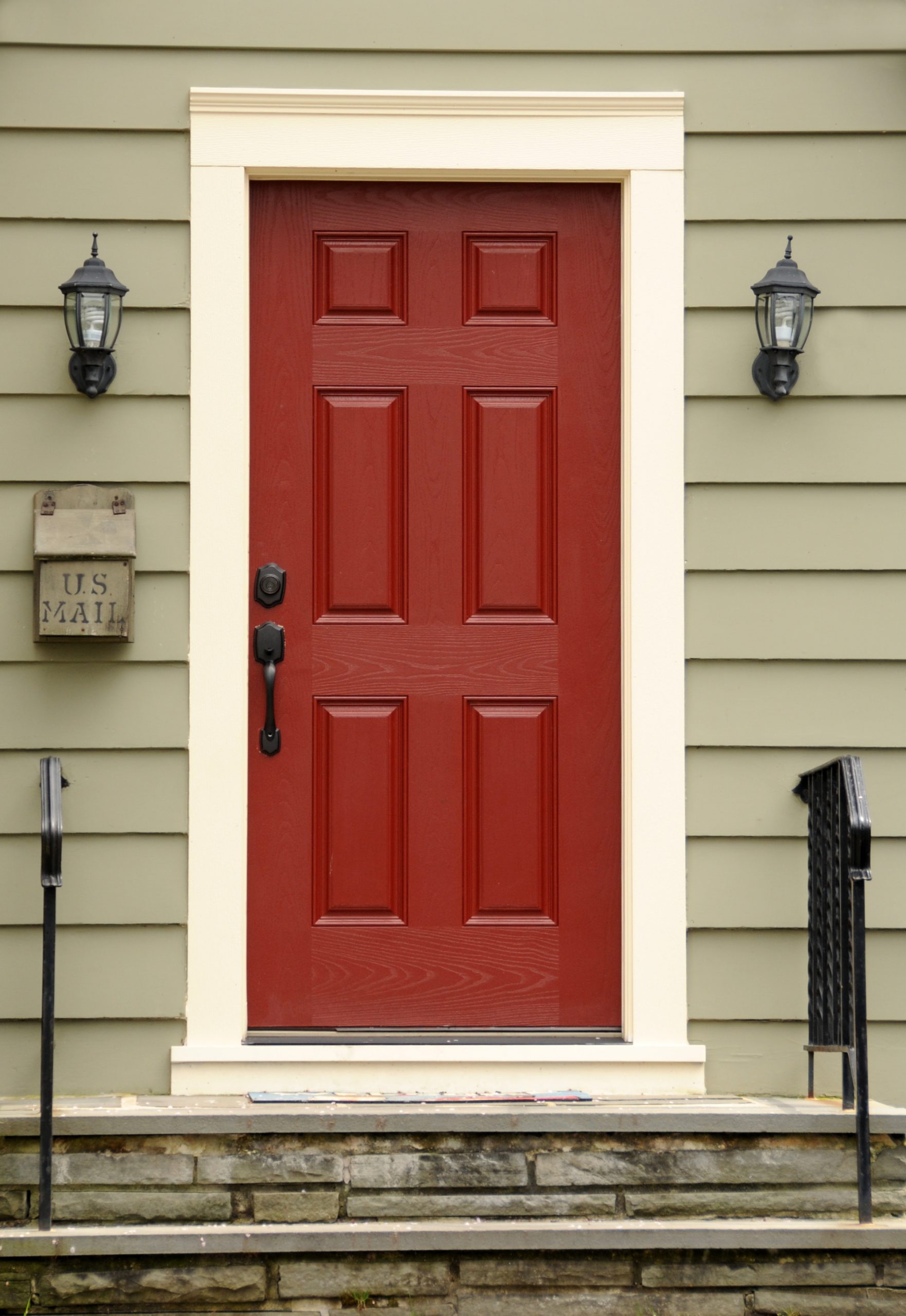 Red wooden door on Colonial home. FOR MORE HOUSES AND DOORS (CLICKHERE)