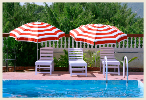 Umbrellas provide welcome shade and a burst of color too.