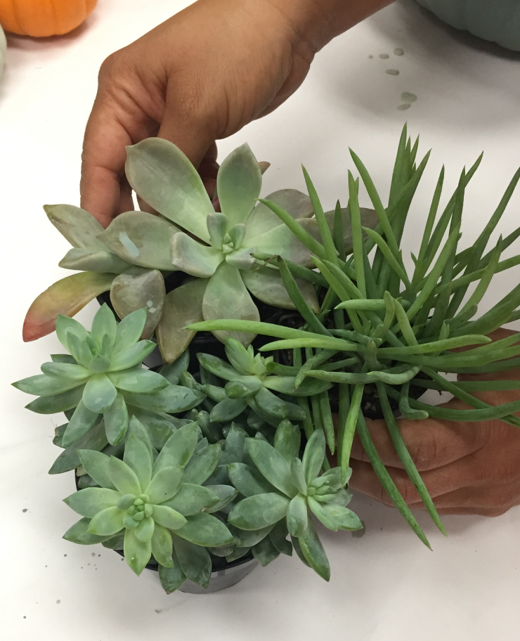 Place your succulent pot into your pumpkin and place somewhere all can see.