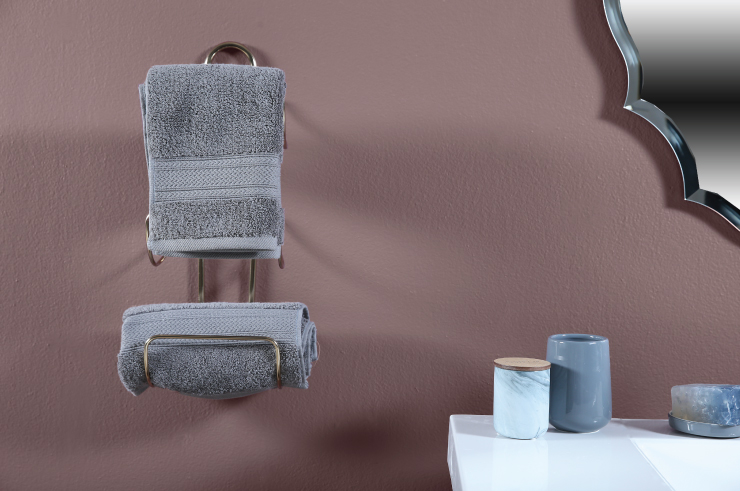 A beautiful, dusty mulberry Raisin in the Sun N120-6 is the perfect color to start your day off right, or end your day on the perfect note.Nothing can make you feel more pampered than the right color in your stylish powder room. The red touched purple tones of Raisin in the Sun perfectly complement the charcoal gray accessories and soft gold fixtures of this bath. Subtle accents in Blueprint S470-5 add a drop of cool color interest to the space.