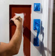 For paneled doors and frames, paint into the recessed area of the panel. Begin at a corner of the recess and continue around its perimeter. Work from top to bottom.