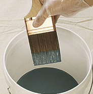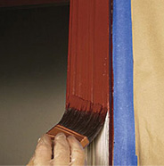 Begin your painting project by pouring thoroughly mixed paint into a bucket and dipping a quality 2"-2½" wide nylon/polyester brush into the paint.