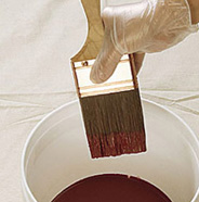 Begin your painting project by pouring thoroughly mixed paint into a bucket and dipping a quality 2"-2 ½" wide nylon/polyester brush into the paint.