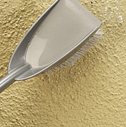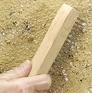 Apply the cleaner and etcher solution to the area with a sponge or pump sprayer. Using a scrub brush, lightly scrub the area to remove the white powdery residue from the surface.