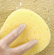 Using a water-dampened sponge or garden hose, wet the area to be cleaned.