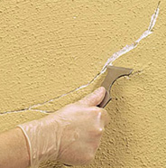 TIP: Use a 5-in-1 painter's tool to widen cracks that are less that ¼" wide. This will remove old stucco, paint, and other debris from the cracks and will allow the patching material to bond tightly to the damaged area.