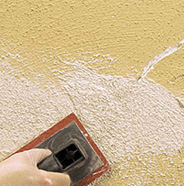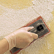 Using a rubber float, press the patching material into the damaged area. Spread no more than a ¼" thick layer into the crack. Allow it to set. Continue to apply stucco patch material in ¼" layers until it is flush with the existing surface.