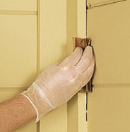 Using 100-grit sandpaper, lightly sand any raised or rough areas.