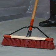 Spread the cleaner and etcher using a stiff bristled, non-metal brush or broom. Allow the product to stand on the surface for at least 10-20 minutes, then scrub vigorously with the broom again.
