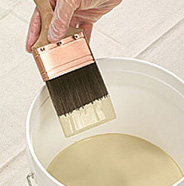 Begin your painting project by pouring your thoroughly mixed paint into a bucket and dipping a quality 2"-2½" wide nylon/polyester brush into the paint.