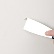 Grabbing a small amount of spackle with your putty knife, cover the hole by gently pressing the putty knife against the wall to fill the hole.