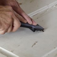 If you need to remove peeling paint, scrape the area with a wire brush or scraper to remove all the loose paint, then sand the finished area to blend it evenly with the surface.