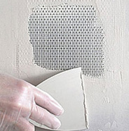 Again using a putty knife, apply patching material over the repaired area and feather it 6"-8" beyond the edges. Allow it to dry.