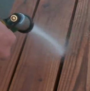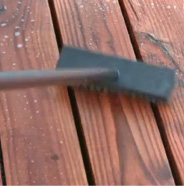 Wait 15 minutes then scrub the wet surface with a stiff bristled brush. Rinse the wood surface thoroughly.