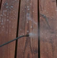 Wait 15 minutes then scrub slightly with a stiff bristled broom. Rinse. You are now ready to clean your wood surface with BEHR PREMIUM All-in-One Wood Cleaner.