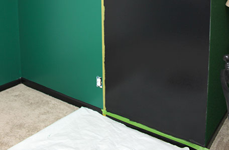 I knew I wanted black to be on the wall for sure. For that reason, I painted a sample in the middle of the wall, then painted samples of other colors around it. In the end, I went with Black and Sparkling Emerald.