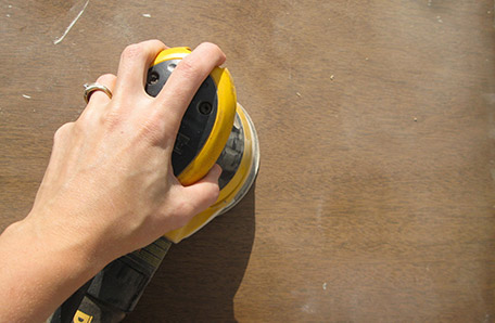 Once the filler dries, it's time to sand. You can use a piece of sandpaper or an orbital sander to smooth it down. This also works if you need to add "tooth" for glossy surfaces.