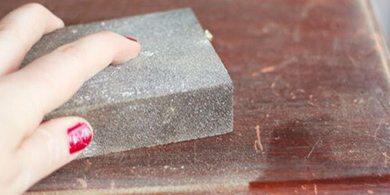 To prep your piece simply take a sanding sponge (any grit between 120-180 will do the trick) and quickly sand down the piece. I don’t spend more than 5 minutes on this step. You want to rough up the finish just enough to keep it from being slick. Then begin.