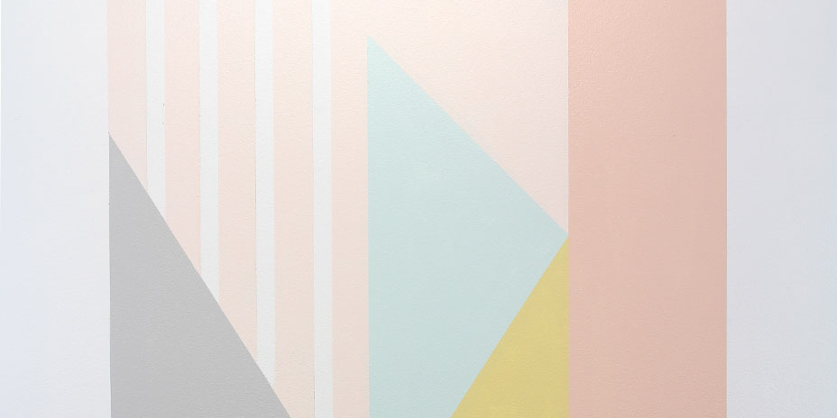 To create the geometrical wall pattern, use a measuring tape to mark where each line will go, making tick marks. Then, use a large straight edge and a pencil to connect the dots and draw the lines on the wall.