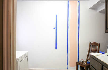 This is the where all the other sections are based off of. Starting on the right, use the tape measure to mark off 12 inches. Use the level and pencil to make two straight lines going up to the ceiling. Follow the taping and painting directions above.