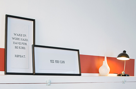 To create the color blocking look on the wall outlining our Poppi desk, simply measure a rectangle around your bed and mark with pencil. Apply painter's tape along the outer edge of your pencil marks. Paint your accent color within the taped off area. Allow the paint to dry slightly before removing tape.