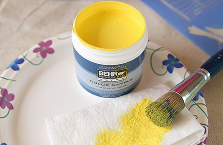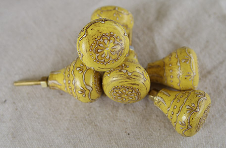 I matched the knobs to the color chips and selected “Buzz-in”, a bright yellow, for the stencils.