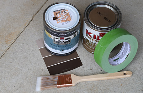 I wanted a paint color that would blend in and compliment the multi-color brick. The wood door was painted pale tan years ago and it looked washed out against the bricks. I thought a richer, deeper color would look great. I ended up with three color chips to take home. The colors ranged from medium to dark brown.