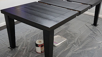 Once the 2nd coat of primer was dried, we were ready to start the transformation, and I couldn’t wait to see how gorgeous the BEHR ULTRA® paint looked on the table. First, we start by using a small brush and filling in all the grooves, then we took our paint roller and rolled the BEHR ULTRA® paint in the color Black on. We chose this black color and it was perfect for us, but Behr offers a variety of other black paint colors and color tools to helps you choose the color that best fits your style.